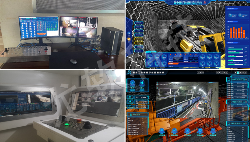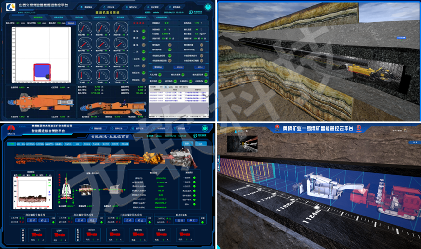 龍軟科技基于精確大地坐標及動態地質模型的智能掘進系統包括了掘進工作面超前物探、地質模型動態更新、設備精確定位及導航、無線網絡傳輸及控制、定位截割、視頻監控、數字孿生管控等關鍵技術及軟硬件產品,實現掘進工作面成套裝備的三維可視化遠程一鍵啟停控制、掘進機定位截割及協同控制等功能。