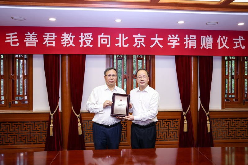 何光彩書(shū)記向毛善君董事長(zhǎng)頒發(fā)了“北京大學(xué)杰出教育貢獻(xiàn)獎(jiǎng)”